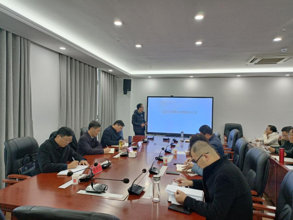 财经学院副院长李宝礼从“师资队伍”、“科研教研”和“人才培养”等三个方面,对标会计专硕申报条件,梳理汇报了特色和方向凝练情况,进一步明晰了差距,并提出了下一步工作设想和措施。