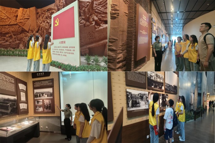 渡江战役是一颗璀璨的明珠,承载着往昔、当下和明日的民族英勇与精神传承。而参观渡江战役纪念馆不仅是一次穿越历史的精神回溯,更是在瞻仰中探寻连接过去与未来的纽带。实践期间,团队成员步入庄严肃穆的渡江战役纪念馆,亲身感受了那段波澜壮阔的历史。他们在一幅幅珍贵的历史图片前驻足凝,在一件件饱含故事的文物前沉思默想,在一段段震撼人心的影像资料前心潮澎湃。亲眼见证了战役决策的英明果断、战士冲锋的无畏英勇、军民团结的鱼水情深以及胜利曙光的激动人心。这些历史的痕迹不仅展现了渡江战役的伟大功绩,更激发了青年学子对革命精神传承与弘扬的坚定决心。