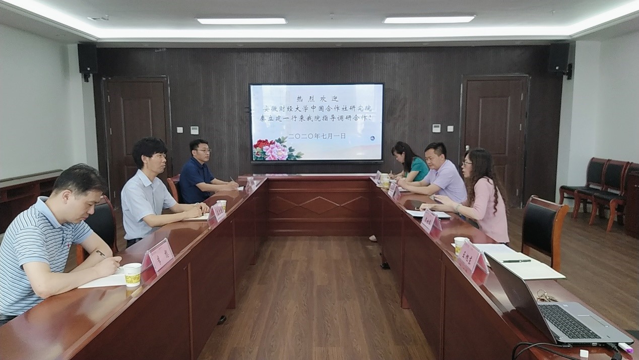 7月1日,安徽财经大学中国合作社研究院院长秦立建一行来到乐鱼平台_乐鱼(中国)一站式服务平台财经学院调研交流工作,学院副院长郝世绵、副书记张传德等出席调研交流会。会议由郝世绵主持。