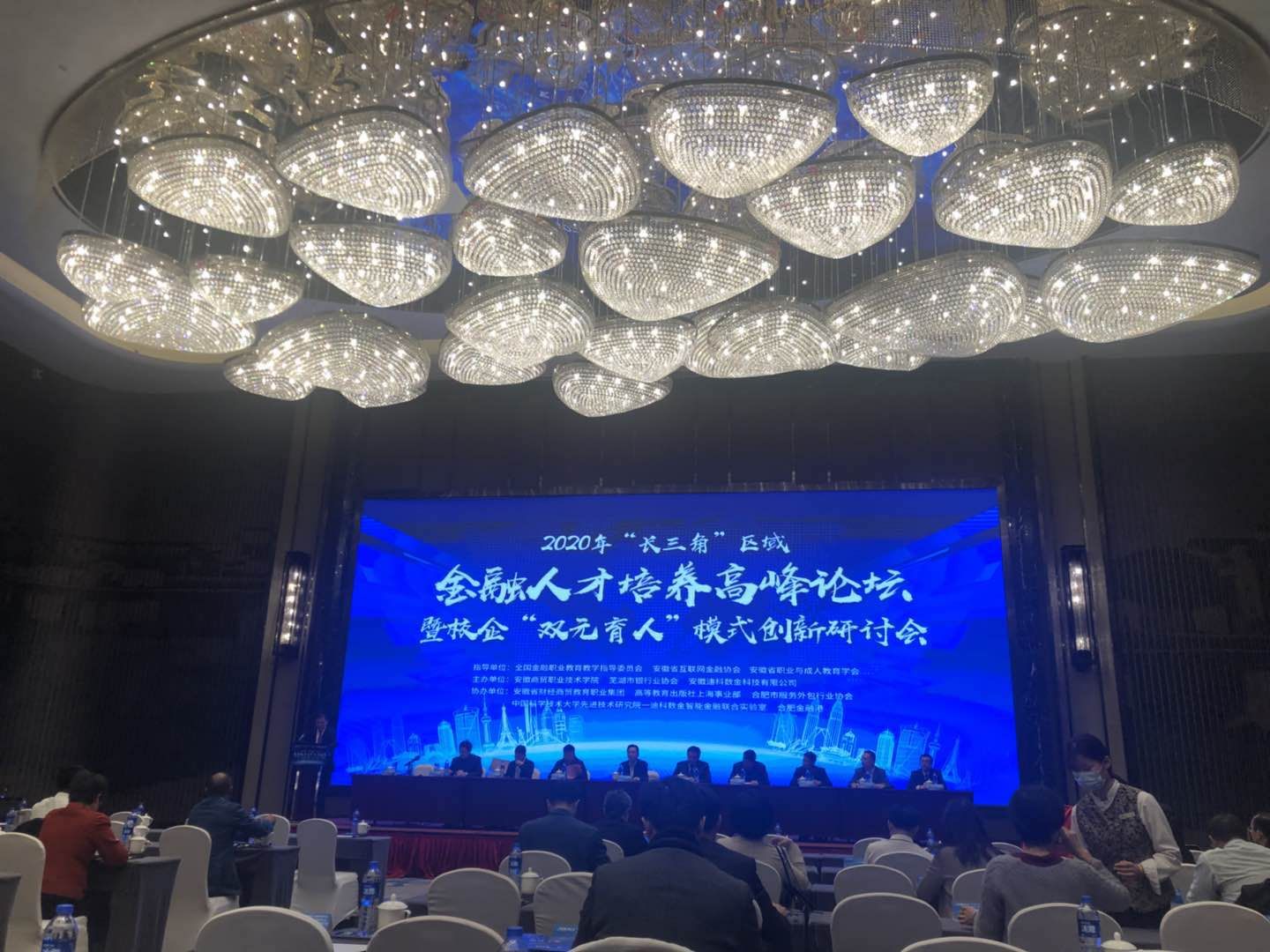 2020年10月30日,财经学院金融工程系赵倩和杨丽两位老师赴芜湖参加“2020年‘长三角’区域金融人才培养高峰论坛暨校企‘双元育人’模式创新研讨会”。本次研讨会由安徽商贸职业技术学院、芜湖市银行业协会、安徽迪科数金科技有限公司主办,来自全国金融职业教指委、金融及教育领域相关行业协会、“长三角”区域“三省一市”的31所普通本科院校和职业高等专科院校、40家金融行业企业代表以及多家媒体记者出席本次会议。会议由安徽商贸职业技术学院党委委员、副校长、经济学教授郑承志主持。