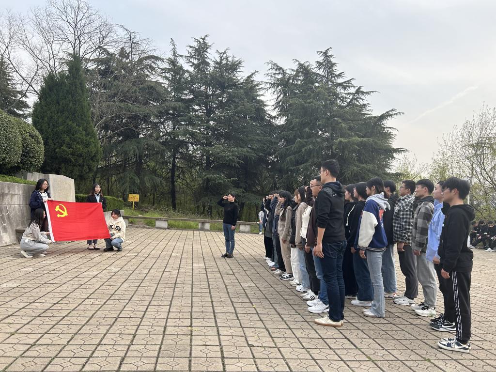在革命烈士纪念碑前,全体党员肃立默哀,鞠躬致敬,表达对革命烈士的敬意。在革命历史陈列馆,在讲解员的解说下,全体人员瞻仰了革命图片、史料以及实物,重温了过去的艰苦岁月和惊心动魄的革命历程。学院党政办主任张俊作为领誓人,带领支部新老党员面向鲜红的党旗,庄重地高举右拳,重温入党誓词。学院还组织“老党员”为“新党员”佩戴党员党徽仪式,旨在引导新党员时刻铭记党的宗旨、初心和使命,时刻用党员的标准严格要求自己。全体人员在“祭奠缅怀英烈 传承红色基因”的横幅上进行集体签名,寄语英雄烈士,表达爱国情怀。