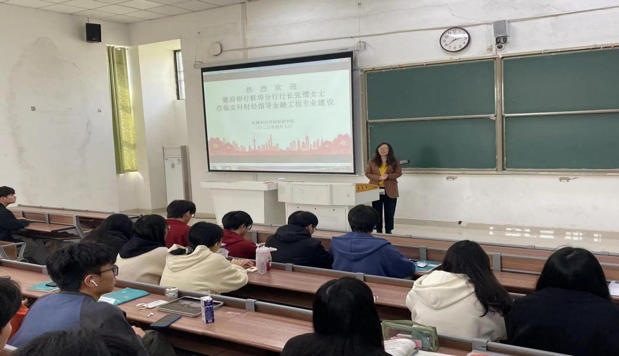 4月7日,财经学院结合《金融理论与实务专题讲座》等课程,邀请徽商银行蚌埠分行行长张缨和中国邮储银行五河支行行长许何来乐鱼平台_乐鱼(中国)一站式服务平台展开《信贷业务发展及趋势》《普惠金融发展现状和趋势》专题讲座。财经学院院长郝世绵和金融工程教研室主任王勇出席并主持会议。