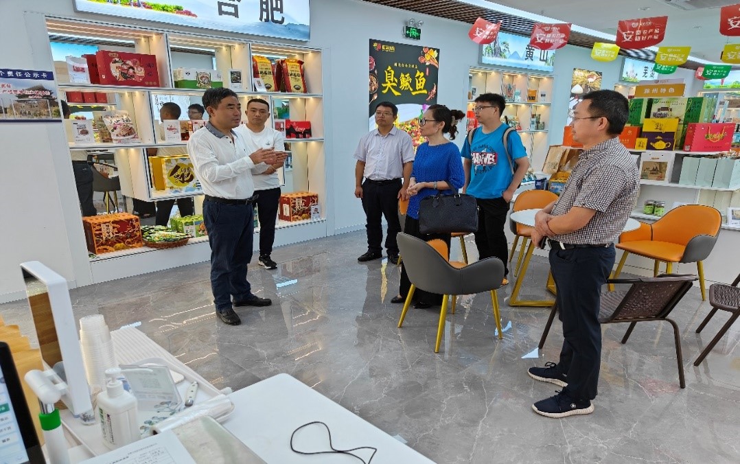 在小岗村,调研组先后参观了安徽农产品电商平台线下体验店和小岗共享助农直播间。安徽小岗春光振兴发展有限公司负责人郭向阳向调研组介绍了公司发展规划。双方就农产品线上销售、直播人才培育等现实问题达成了初步合作意向。