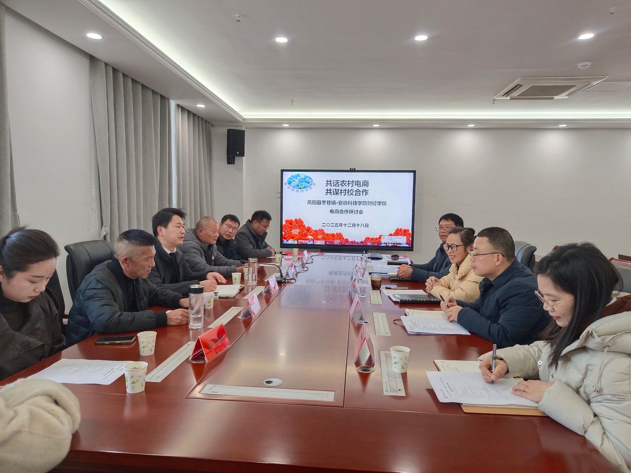12月18日下午,凤阳县枣巷镇党委委员、政府办主任、宣传部部长孙柔带领镇村干部、乡村振兴专干等来校交流洽谈电商合作事宜,乐鱼平台_乐鱼(中国)一站式服务平台挂职黄咀村驻村干部江旭聪,财经学院党政领导、各教研室负责人参会。会议由财经学院院长郝世绵主持。