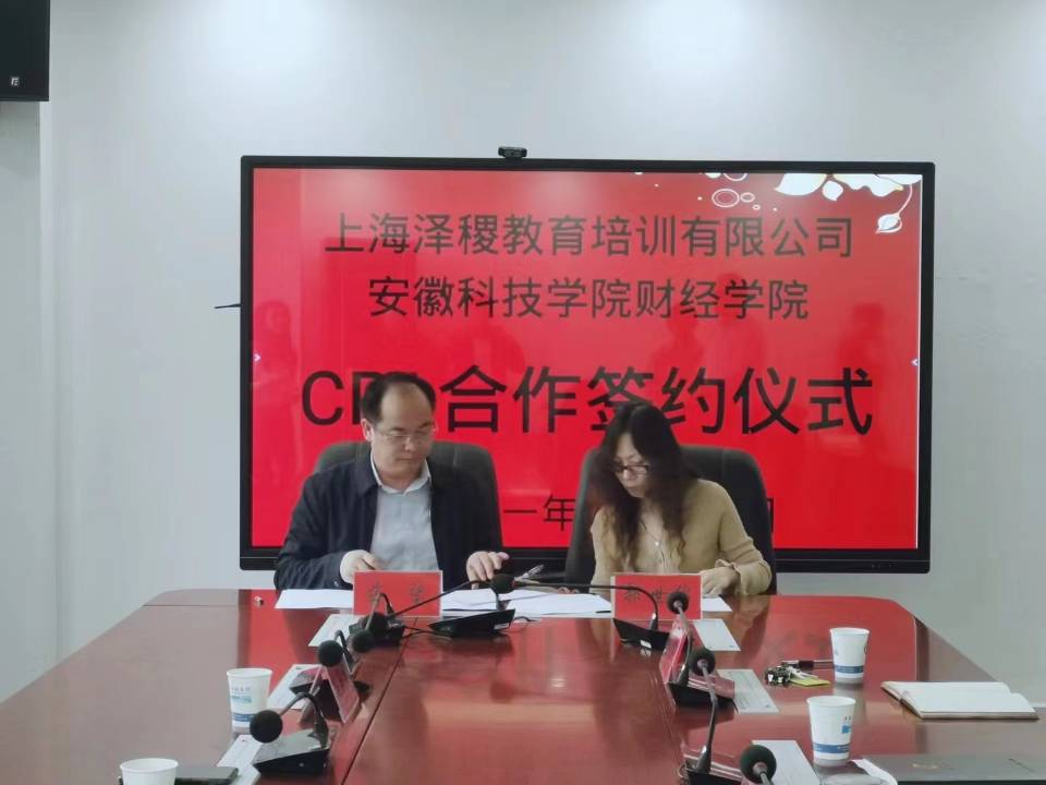 5月14日上午,乐鱼平台_乐鱼(中国)一站式服务平台财经学院与上海泽稷教育培训有限公司在龙湖校区综合信息中心317会议室举行CPA(注册会计师,以下简称CPA)菁英班合作签约仪式。财经学院院长郝世绵与上海泽稷教育培训有限公司董事长蒋望代表双方签订合作协议书,财经学院党总支书记杜小明,副院长李强、李宝礼,上海泽稷教育培训有限公司总裁助理宁兆丰,市场经理左海林等人参加了此次签约仪式,会议由财经学院院长郝世绵主持。