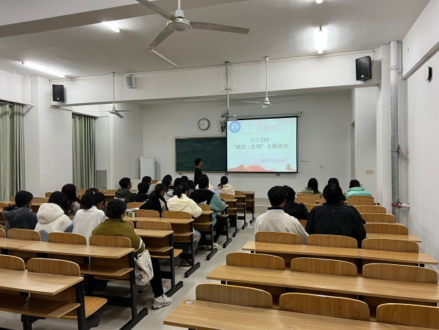 为深入践行社会主义核心价值观,加强诚信文明建设,财经学院2022级各班级在院团委的指导下纷纷开展 “讲诚信,塑品德,重担当,有作为”主题班会。会议由各班班长主持,班级辅导员全程指导。