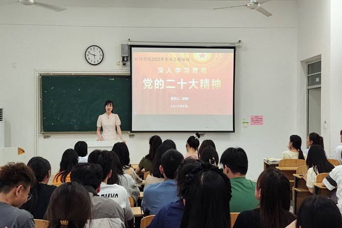 为深入学习贯彻习近平新时代中国特色社会主义思想,财经学院于6月20日在致知楼C103开展深入学习贯彻党的二十大精神主题团课。学院青马工程学员、2023年入团积极分子参加此次主题团课。团课由校辅导员理论宣讲团成员、财经学院团委书记薛枫主讲。