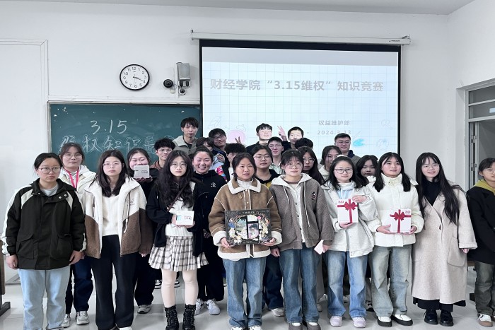 为提升大学生自身的维权意识,树立正确的消费观念,进一步推进学院精神文明建设工作,3月14日,财经学院权益维护部于致知楼C108举办“3.15”消费维权知识竞赛。学生会指导老师尹成超现场指导。