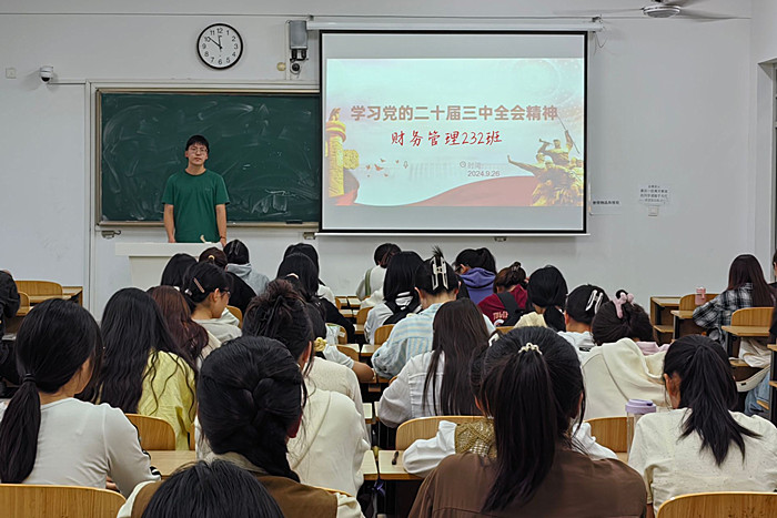 9月25日-29日,财经学院团委组织学院各团支部开展主题团日活动,学习贯彻党的二十届三中全会精神,凝聚思想共识,汲取奋进力量。