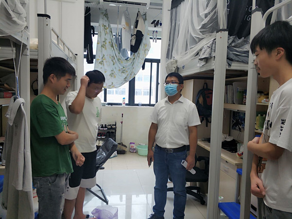 走访中,学院领导与返校学生进行了亲切交流,了解学生暑假学习生活情况,提醒学生要给父母报平安,返校后切实做好疫情防控常态化工作,进一步提高安全防范意识;注意用电安全、交通安全、个人财产安全等安全事项;鼓励学生们新学期要珍惜青春时光,合理规划大学生活,提高自律与独立生活能力,互助友爱,勤奋学习,学好专业课,为考研提前做准备,同时提醒学生们要注意身体健康,加强锻炼,努力改善宿舍卫生。