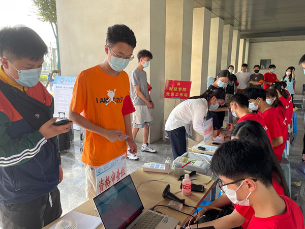 为确保迎新工作有序高效开展,让新生感受温馨,让新生家长放心,学院迎新工作领导小组在资格审查、疫情防控信息核验、一卡通及房卡发放、志愿接送、行李搬运等各环节做了精心部署。从新生进入校门起,学院党员工作站、学生会干部组成的迎新志愿服务队伍便全程一对一甚至多对一为新生服务,帮助新生搬运行李,引导新生完成报到的各项手续,直至将新生送到温馨的宿舍。路上,志愿者们还细致地向新生介绍学校教学楼、食堂、浴室、办公楼、图书馆自习室、超市的位置,告知一卡通使用方法,带领新生前往充值,并且按照学院要求向新生做各方面的安全提醒。
