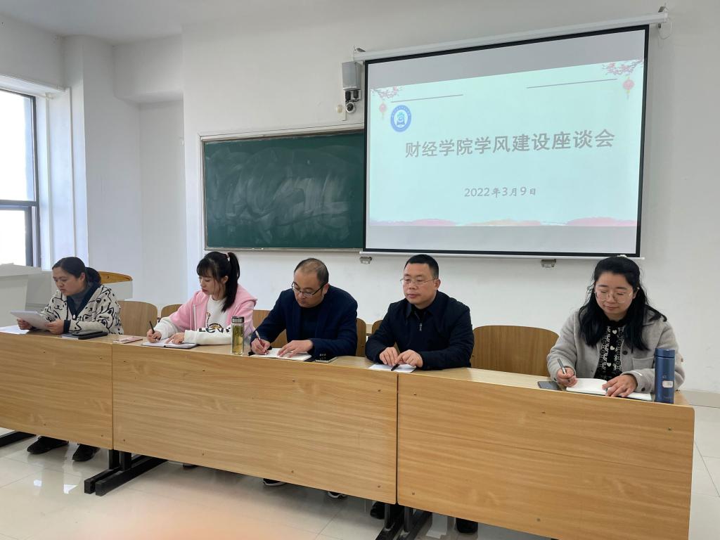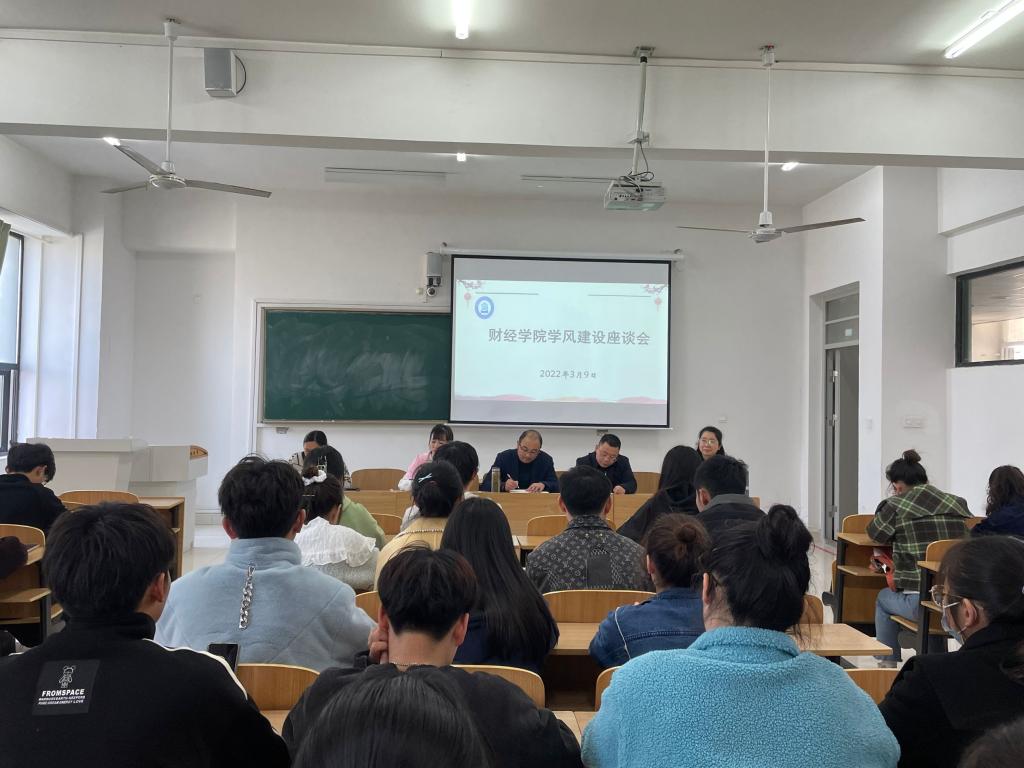 为进一步深化立德树人的教育理念,营造积极向上的育人环境,财经学院于3月9日下午在致知楼C209教室召开学风建设座谈会。财经学院纪委书记、党委副书记耿广汉老师,财经学院副院长李强老师,财经学院纪委副书记、团委书记薛枫老师,财经学院教学秘书肖秀华老师,以及19级至21级学习委员参加了此次座谈会,本次座谈会由宣晶晶老师主持。