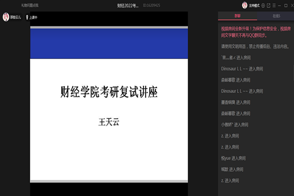 为指导考研达线学生做好复试准备,提升学院就业质量,3月16日,财经学院利用QQ群课堂开展考研复试线上讲座。学院副科级组织员王天云担任主讲,2022届考研达线学生参会。