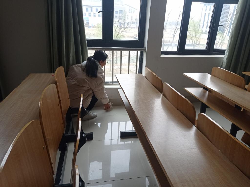 同学们进行了详细分工,在明确了自己的劳动任务后,迅速地步入清扫过程,从讲台到角落,从抽屉到地面,同学们都以认真的态度,高质量的进行了清扫。负责擦黑板的同学也努力让每一面黑板都干净如新。活动结束后,清扫人员将工具摆放至原来的位置,并把灯和门关闭后离开。