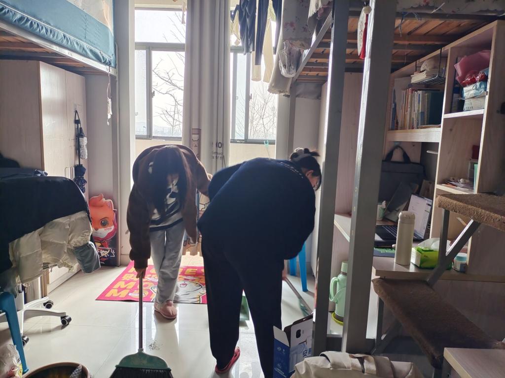 面对疫情防控和文明宿舍创建的要求,同学们认真清扫寝室,摆整物件,整理内务。宿舍内常通风,勤消毒,不留卫生死角,保持居住环境的整洁。同学们也在寝室布置中体验了劳动的艰辛,收获了劳动的快乐。