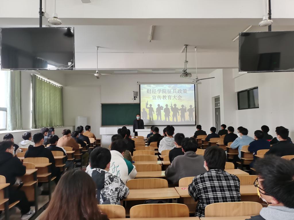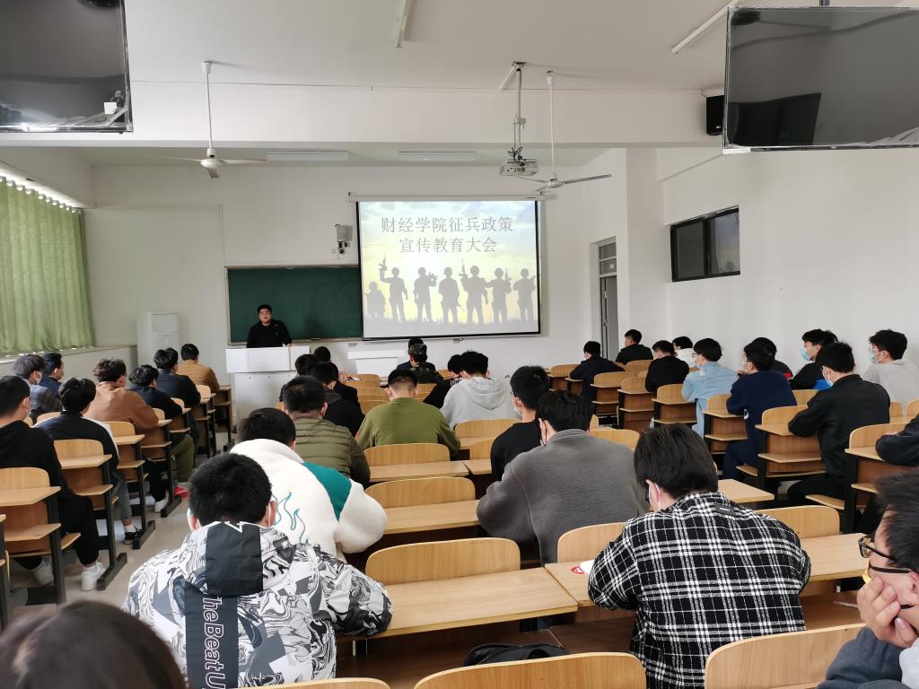 财经学院历来重视大学生征兵工作,成立学院大学生征兵工作领导小组,定期召开会议部署推进工作。本次征兵宣传教育大会,进一步激发了学院学子投身军营、建功立业的热情和信心,为学院扎实推进征兵工作打下坚实基础。(特有通讯员:王天云 审核:耿广汉)