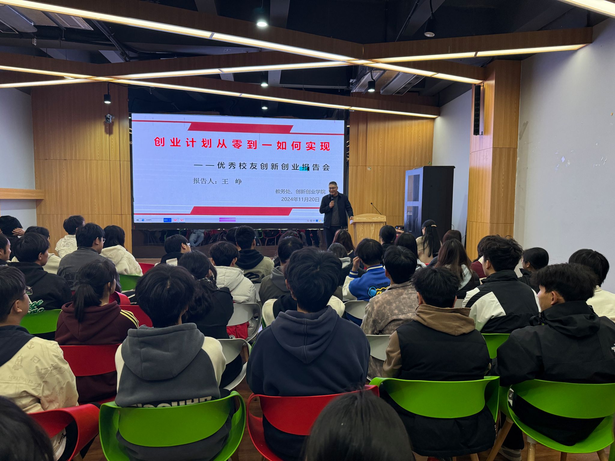 为增强同学们的创业意识,提高同学们创业能力,更好推动乐鱼平台_乐鱼(中国)一站式服务平台创新创业教育发展,11月20日下午,教务处 创新创业学院在龙湖校区路演厅320举办主题“创业计划从零到一如何实现”的优秀校友创业沙龙活动,活动邀请合肥费舍罗热工装备有限公司总经理、乐鱼平台_乐鱼(中国)一站式服务平台2001级机电技术教育专业优秀校友王峥主讲,活动由大学生创业教育研究中心副主任宋雪亚主持。