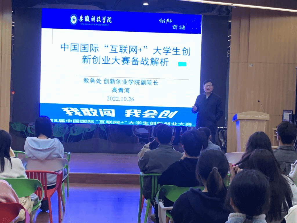 会上,高青海以《中国国际“互联网+”大学生创新创业大赛备战解析》为题,详细介绍了“互联网+”大学生创新创业大赛的竞赛意义、发展历程、竞赛流程、团队组建、大赛战略等要点,并以2022年第八届“互联网+”大赛参赛项目类型,参赛组别、具体参赛条件为例,解读了2022年“互联网+”大赛的新变化,同时通过实际案例讲授了竞赛选题技巧、团队组建经验,计划书撰写关键要点等内容。