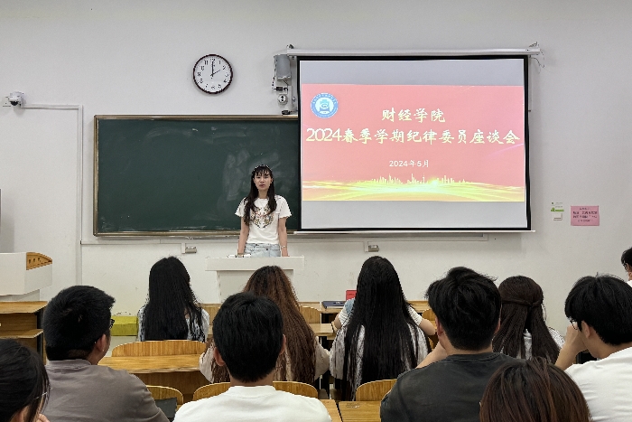 为深入贯彻落实《关于加强新时代廉洁文化建设的意见》精神,进一步推动廉洁文化进校园走深走实,提升学生干部自律意识,促进纪律委员履职尽责,5月31日,财经学院在致知楼B107召开班级纪律委员座谈会。学院有关教师和全体班级纪律委员参会,会议由专职辅导员丁雨妍主持。