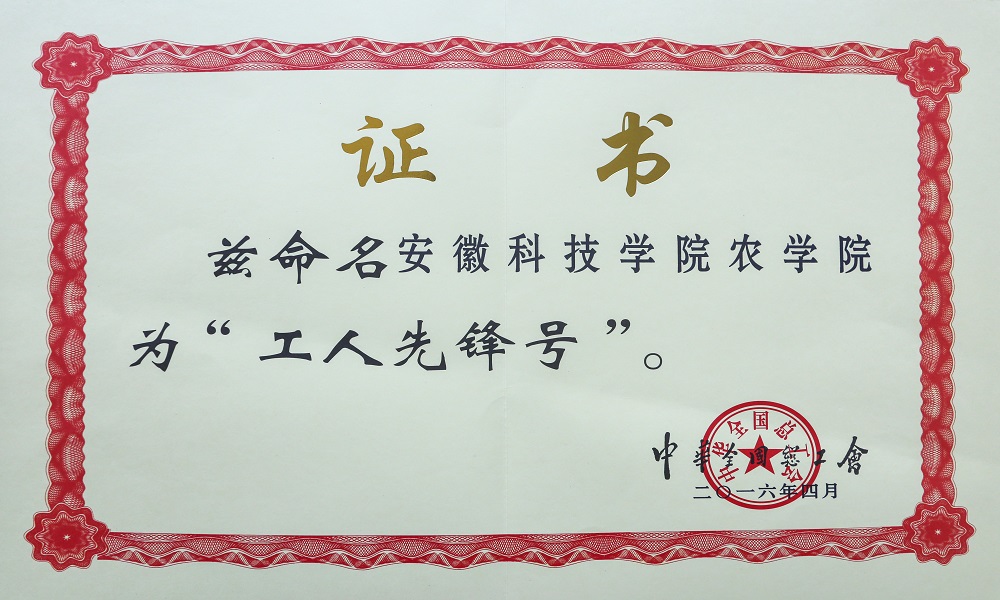 2016年农学院获全国总工会“工人先锋号”表彰