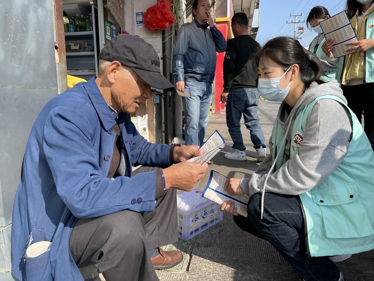 图5 2022年10月23日人文学院法学专业学生党支部走上凤阳县街头开展“疫情防控,法治同行”普法宣传活动