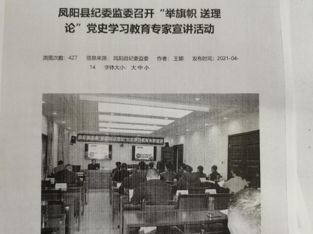 2021年4月14日王有炜到凤阳县纪委开展理论宣讲