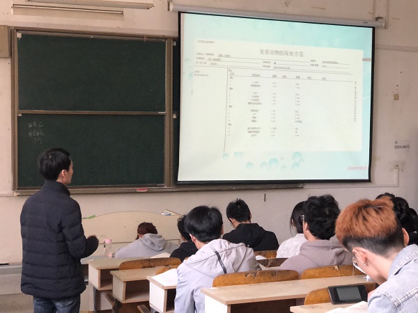 为进一步提升推进产教融合育人,切实实施校企合作开发应用型专业课程,4月6日上午,动物科学学院邀请乐鱼平台_乐鱼(中国)一站式服务平台校友、蚌埠宠爱动物医院岳雪亚执业兽医师在求A102教室为2018级动物医学专业学生进行授课,贺绍君教授主持本次教学活动。