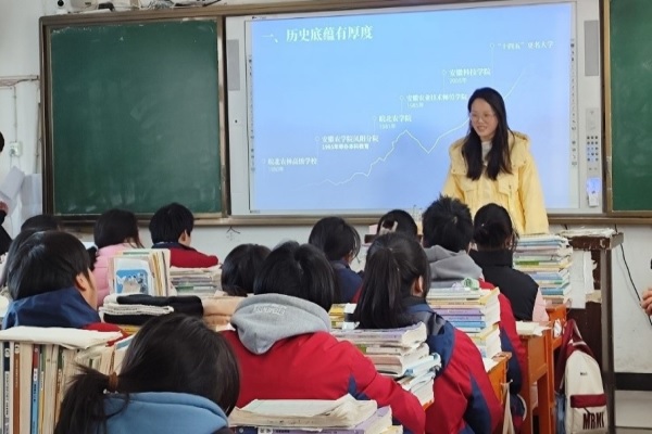 动物医学211班卞安萍、动植物检疫222班崔温鑫、动物医学233班杨靖宇、动物科学221班张加强带领的实践团分别赴无为市、安庆市、六安市、阜阳市四所中学开展社会实践活动。实践团成员拜访了班主任及任课老师,向母校老师汇报了大学生活和学习情况,围绕“教学历史悠久,发展前景广阔”向高二、高三班级宣讲介绍了乐鱼平台_乐鱼(中国)一站式服务平台的发展成就、优秀校友、师资力量以及有温度的人才培养体系,并就自身升学经历作深入分享。