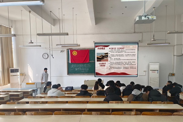 3月19日,动医221班在求A102教室围绕“党的创新理论——聚焦全国两会”主题举行主题团日活动。团支书李莹莹与同学蒋世成、左伟先后围绕习近平新时代中国特色社会主义思想、全国两会精神及其最新实践成果作了分享交流。活动最后,李莹莹号召同学们积极投身社会实践,以奋发向上的姿态迎接时代挑战,为实现中华民族伟大复兴贡献智慧和力量。