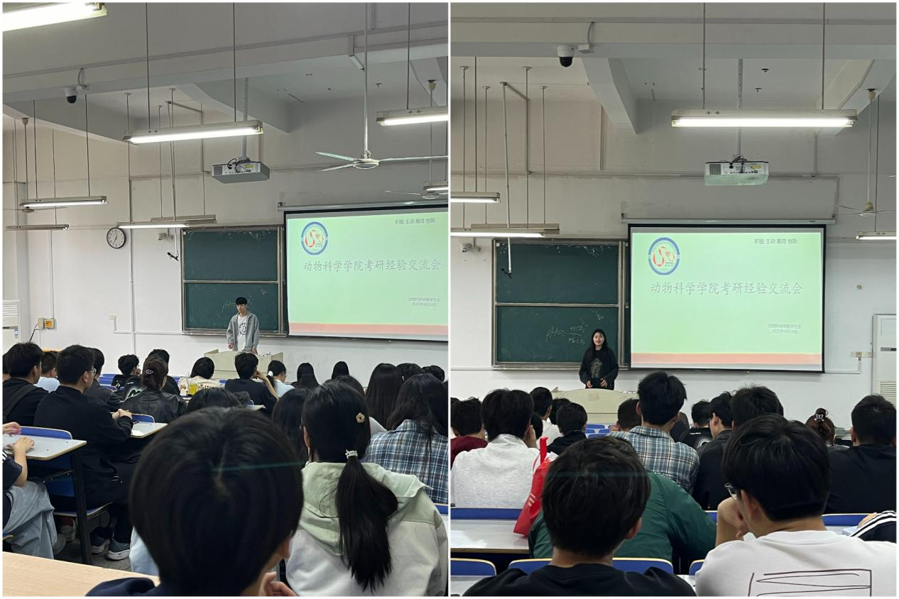 4月24日,动物科学学院在求知楼A106教室举办2025年考研经验交流会。此次经验分享交流会邀请了考研成功上岸学生代表动物科学212班韩奥特和动物医学213班陶非作考研经验分享,150余名学生参加此次分享交流会,会议由学院学生会学习发展部刘宇主持。