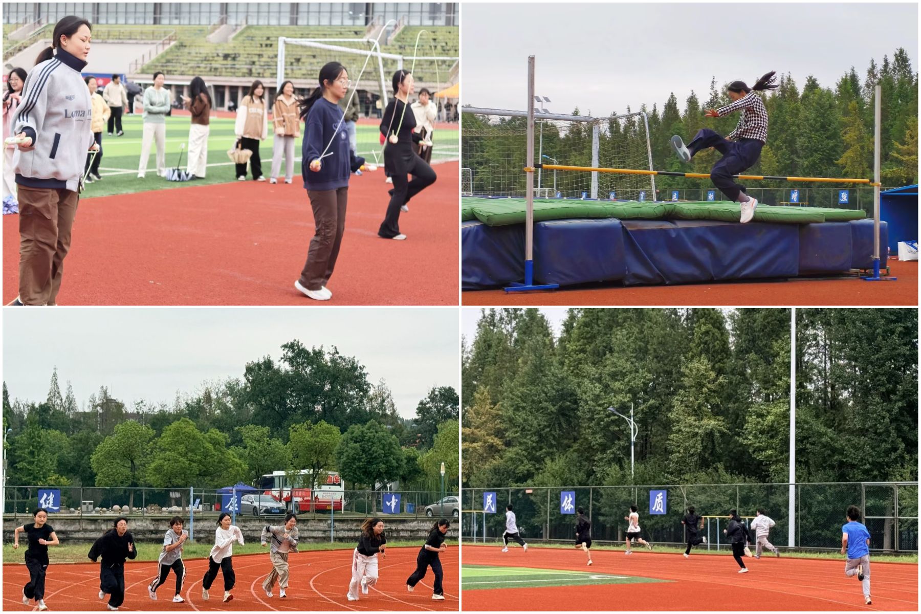 比赛期间,运动员们不畏风雨、奋勇争先。径赛场上,短跑选手如离弦之箭冲破雨幕,展现出速度与激情;中长跑运动员凭借过人耐力与坚韧意志,在雨水中跑完征程;田赛场上,铅球划出优美弧线,跳远选手在助跑、起跳间展现力量之美。运动员们在风雨中尽展风采,以拼搏姿态书写青春华章。