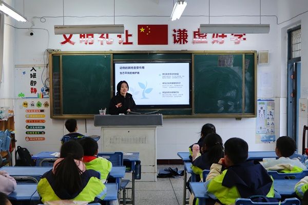 在“动物生态作用”专题讲解中,志愿者老师结合专业知识,用“狼控制羊的数量,让草原不被过度啃食”等通俗案例,生动诠释动物在生态系统中的平衡作用,让同学们明白了“每一种小动物都有大用处”。