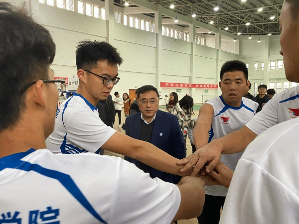 本次决赛采取五局三胜赛制,双方球员你来我往,一个个精彩的扣球、拦网,队员之间相互配合,呈现一场视觉盛宴。队员们在赛场上挥洒汗水、奋力拼搏,每一个传球都凝聚着团结与智慧,每一次接球都尽显他们青春的活力。那一次次的跳起、扣球,一次次的拦网,一次次的飞跃救球,充分展现了动科院学子的风采。队员们矫健身姿,磅礴的力量,灵活的变位,让整个赛场上充满呐喊、助威、喝彩、拼搏、活力。在比赛过程中,姚勇对排球队成员在赛场上的出色表现予以了肯定和认可,学院20级新生全员到场为此次决赛呐喊、助威。
