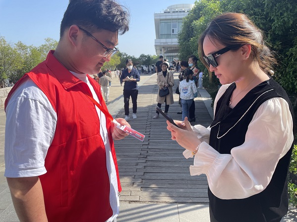 活动中,志愿者们也不忘劝导游客要注意安全,谨防被骗、盗抢等不安全因素,让旅途更加顺畅和安心。(特约通讯员:李焱 摄影:李焱 审核:姚勇)