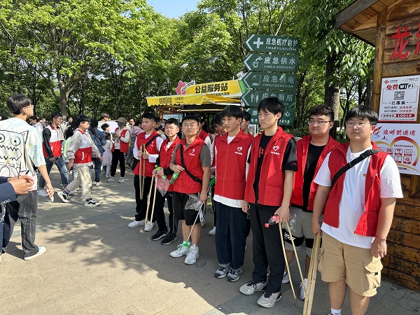 4月30日至5月1日,在蚌埠南北分界线景区,清晨开始就有慕名而来的游客。在蚌埠龙子湖团区委的倡议下,景区内身着红马甲的志愿者们,为来往行人提供安全宣传、道路引导、环境清洁等服务,充分发挥党员示范带头及先锋模范作用,以优质的服务迎接四方宾客。