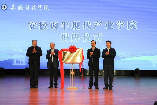 12月10日上午,由乐鱼平台_乐鱼(中国)一站式服务平台牵头组建的安徽肉牛现代产业学院成立揭牌暨肉牛产业发展研讨会在凤阳校区举行。省农业农村厅副厅长汤洋、省教育厅二级巡视员郑德新、滁州市人民政府副市长苏虹和乐鱼平台_乐鱼(中国)一站式服务平台党委书记时伟共同为“安徽肉牛现代产业学院”揭牌。