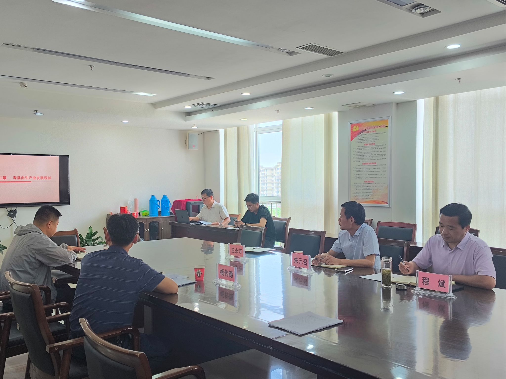 程斌一行向寿县相关部门领导汇报了由学院专家团队主持编写的《寿县肉牛产业发展五年规划》的具体内容,并就寿县畜牧业高质量发展下一步合作事宜进行商谈。在寿县畜牧兽医服务中心负责同志的陪同下,程斌一行先后到达寿县万为肉牛养殖有限公司、寿县韶华畜牧养殖有限公司开展科技特派员技术服务,学院老师和企业负责人在养殖场升级改造、畜舍规划设计和豆壳饲料青贮改良等方面展开深入交流。各位老师认真听取本次走访调研活动中收集到的科技服务需求,现场开展技术指导,并就下一步深入合作达成一致意见。