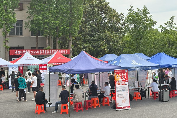 5月13日下午,动物科学学院“春招燃动,‘职’引未来” 2025年春季畜牧兽医类专场就业集市在学校五四广场举行。本次招聘会汇聚了畜牧兽医行业众多龙头企业,为毕业生搭建了优质的双选平台。学院党委书记甘宗平、副书记汤帅和全体辅导员现场与参会企业代表及毕业生进行了深入交流。
