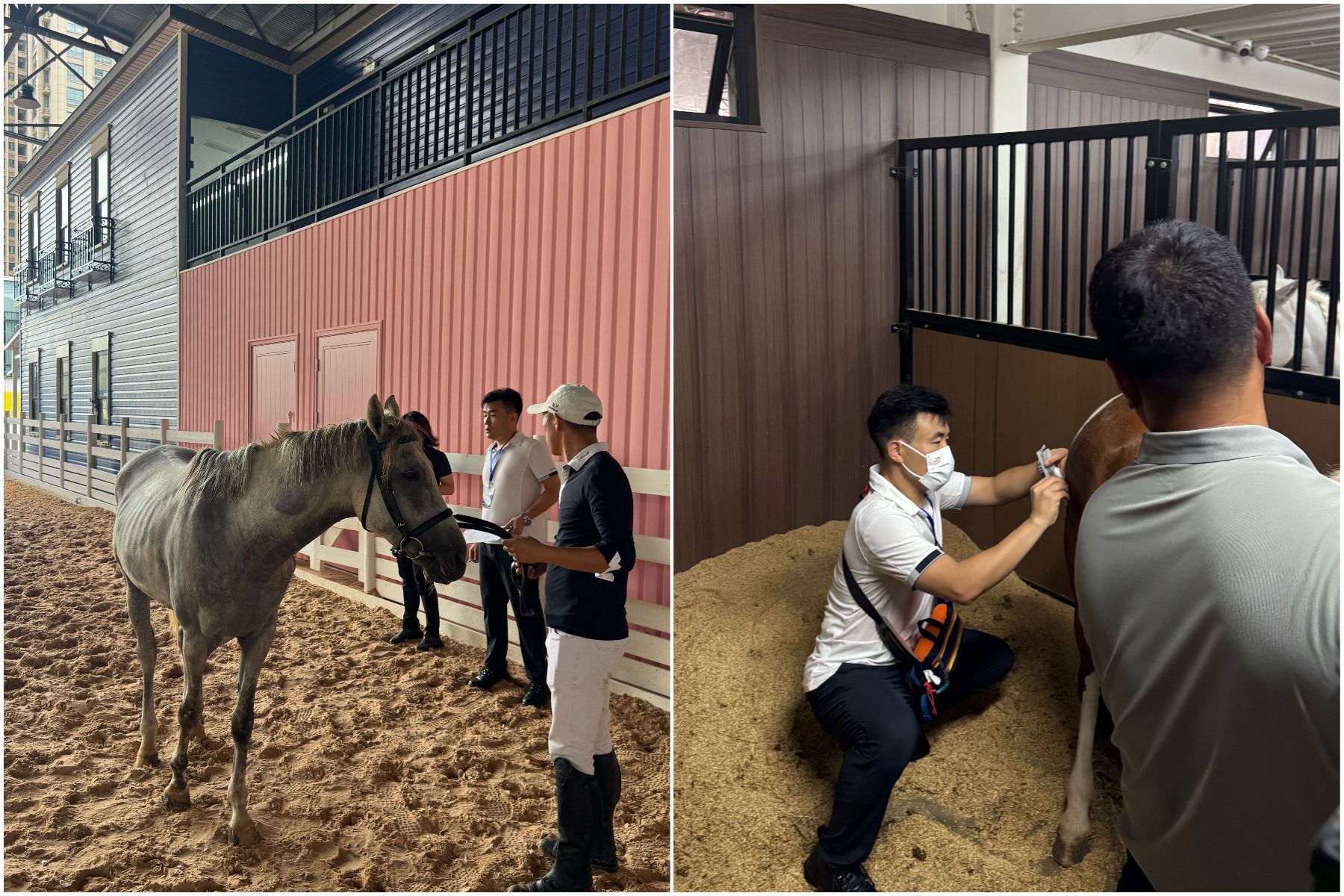 比赛期间,阮崇美带领兽医团队为参赛马匹提供全程医疗支持,赛前实施健康评估、检疫检验,建立健康档案,赛中实时监测马匹状况并处理突发情况,对受伤马匹采取针灸治疗等应急措施,确保比赛顺利进行。