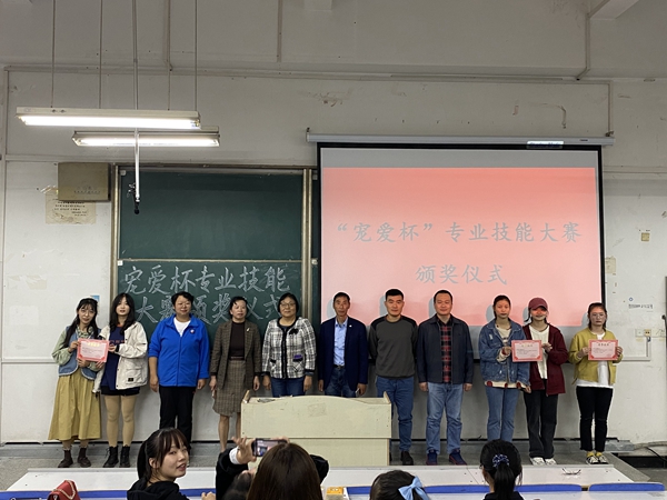 10月14日下午4点,动物科学学院“宠爱杯”专业技能大赛颁奖仪式在求知楼A栋106举行。蚌埠宠爱宠物医院院长杨金凤、动物科学学院李静、路振香、阮崇美、熊永洁作为颁奖嘉宾应邀出席并为获奖队伍颁奖。