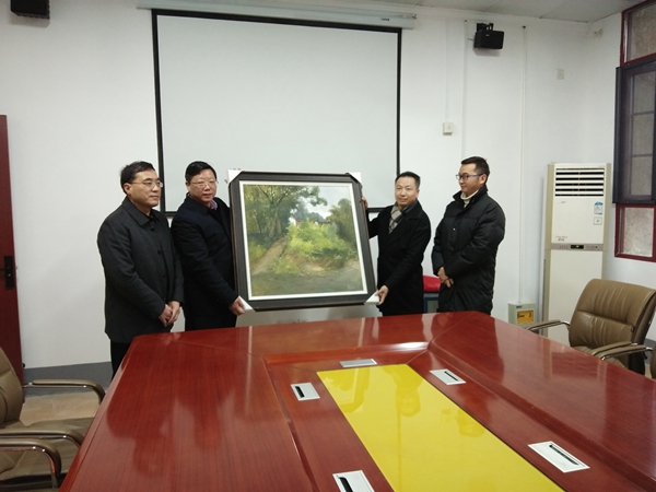 仪式上,汪肇安向母校捐赠布面油画《塅子人家》和现金伍万元整。油画由著名画家刘曦创作,具有较高的收藏价值。整个画面洋溢着浓郁的乡村气息,从绿树掩映着的农家小屋延伸出一条蜿蜒的小道,寓意着农家学子从农村到城市一路走来的道路虽然艰难,但坚持走下去就有希望,就一定能迎来光明的未来。(特约通讯员:胡文靖 摄影:胡文靖 审核:姚勇)
