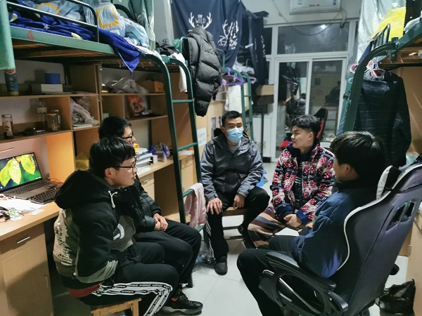 在学生宿舍,辅导员与同学们亲切交谈,仔细了解大家的寒假生活、询问同学们新学期的目标、查看学生宿舍的卫生情况,叮嘱学生在疫情防控常态化背景下,养成健康文明的生活习惯及营造干净舒适的生活环境的重要性。在毕业班学生寝室,辅导员们还详细了解了毕业班学生的考研初试情况、毕业论文进度及职业规划等情况,听取学生在学习、生活中存在的困难并给出相关建议。