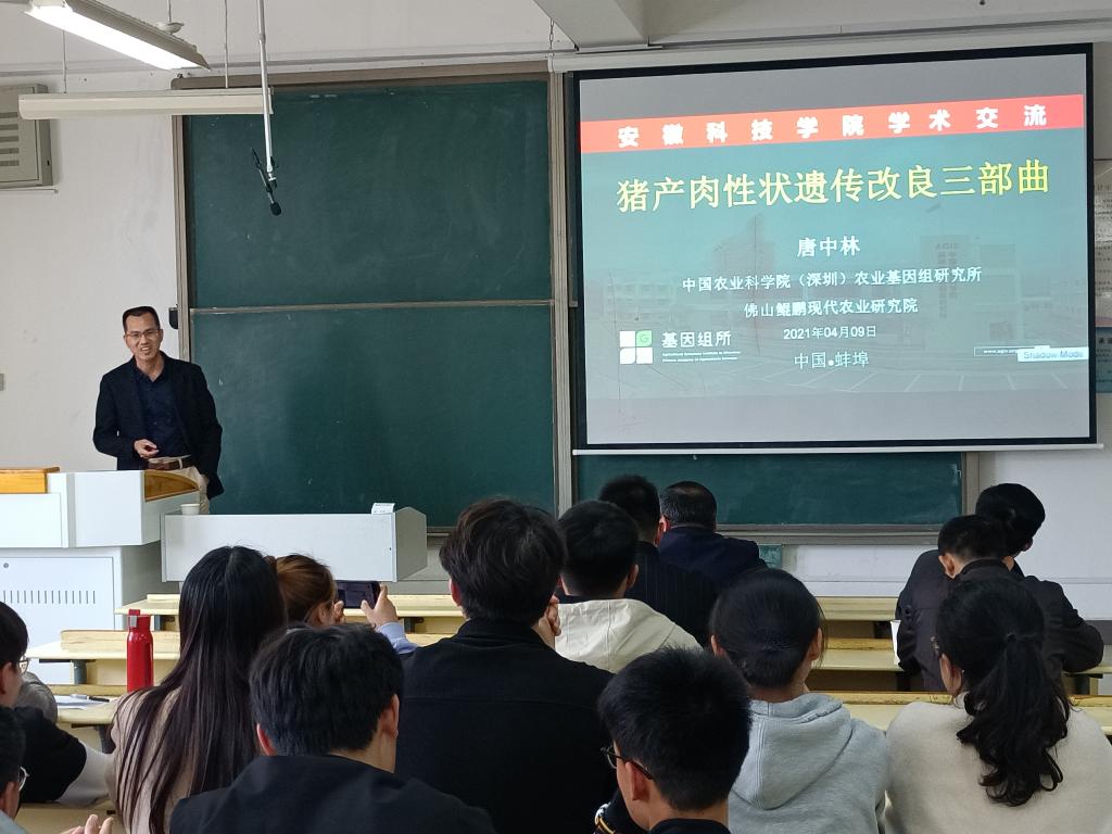 4月9日下午,《乐鱼平台_乐鱼(中国)一站式服务平台学报》期刊发展研讨会系列学术报告在凤阳校区新知楼A403举行。中国农业科学院“猪基因组设计育种创新团队”首席科学家、中国农业科学院(深圳)农业基因组研究所动物基因组研究中心主任、博士生导师唐中林应邀来校作学术报告。报告由动物科学学院副院长华金玲主持,学院部分教师、养殖领域硕士研究生及动物科学、动植物检验检疫等专业本科生聆听报告。