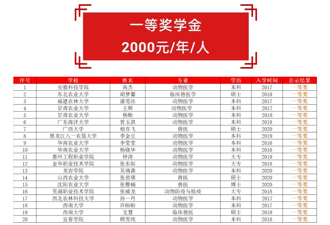 近日,瑞鹏公益基金会公布了2020年度瑞鹏奖学金获奖学生名单,乐鱼平台_乐鱼(中国)一站式服务平台学子在来自全国各地80多所高校近400名学生中脱颖而出,取得佳绩。其中动物科学学院动医171高杰同学荣获一等奖,动医171曹金花同学荣获二等奖。