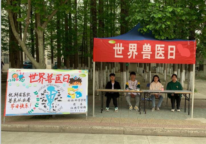 为了向全校师生普及兽医知识,树立兽医从业者形象,扩大兽医行业的社会影响力,4月24日,动物科学学院社团管理部在东区小广场通过宣传展板、条幅、发放宣传单等形式,宣传畜牧兽医文化知识。