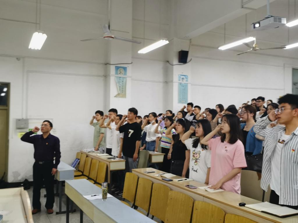 随后,姚勇带领全体毕业生党员重温入党誓词。