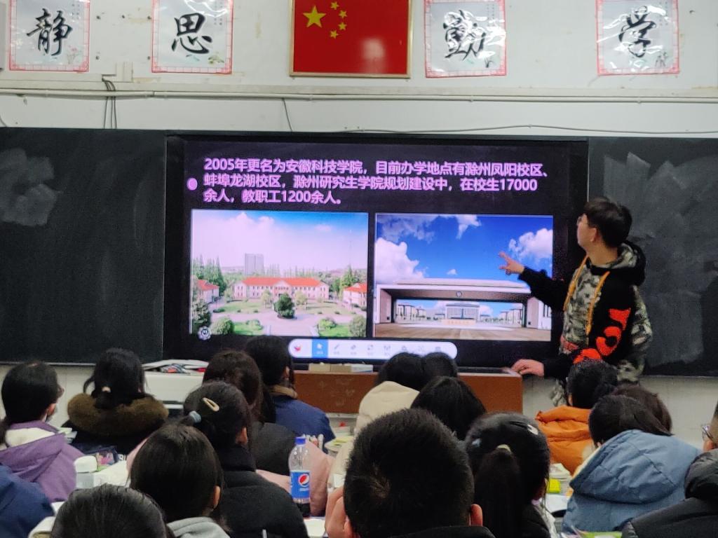 动植物检疫212班赵长旭及其团队三人组成的实践团队赴安徽机电工程学校开展了寒假实践活动。实践团探望了高中班主任与任课老师,向老师讲述了自己在大学的变化与成长,由衷感谢老师们的教诲之恩。随后实践团队来到了高三毕业班,向同学们播放了乐鱼平台_乐鱼(中国)一站式服务平台招生宣传片,向学弟学妹们传授了各自的学习经验,并且耐心回答同学们在专业选择、报考和学习上的问题。