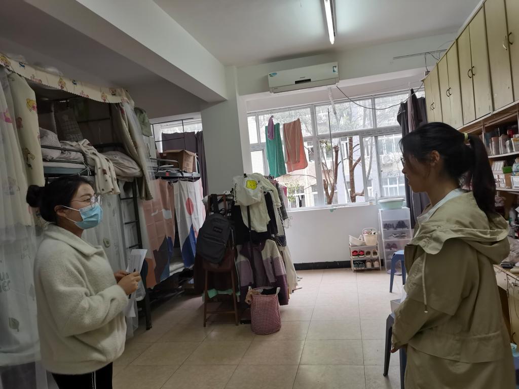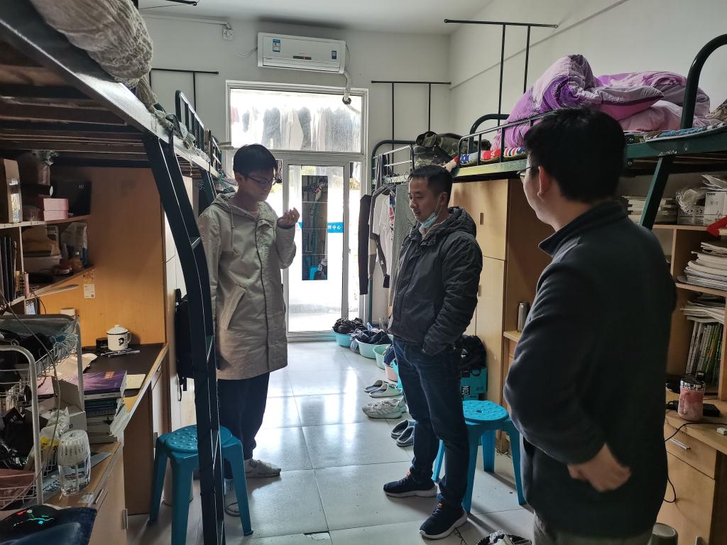 3月31日晚,动物科学学院党委副书记、纪委书记汤帅带领全体辅导员深入学生公寓,深入了解疫情期间同学们的线上线下学习、心理和生活状况,同时开展疫情防控期间宿舍防疫工作检查和防疫知识宣传。走访过程中,辅导员与学生亲切交谈,了解学生的思想动态,倾听学生的诉求,并针对学生提出的问题,给予解决办法。叮嘱学生要严格按照学校防疫工作通知要求,及时关注学校防疫工作动态,配合学校做好相关防疫工作。告诉学生要勤开窗通风,佩戴好口罩,勤洗手,做好自身体温监测和晨、午(晚)上报,保持宿舍卫生清洁、通风,不互相串门,注意个人防护。