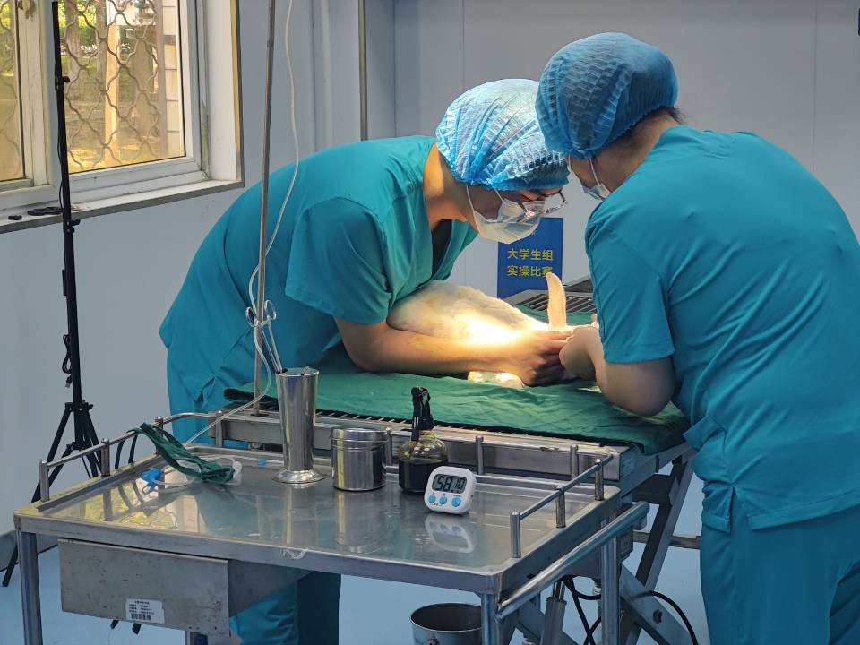 5月26日,第七届“雄鹰杯”小动物医师技能大赛在乐鱼平台_乐鱼(中国)一站式服务平台附属兽医院手术室完成理论和实验操作考核,其中理论考核采用线上专业考核系统,随机抽取试卷进行作答;实验操作考核包括兔胃切开术、血涂片制作和徒手打结。