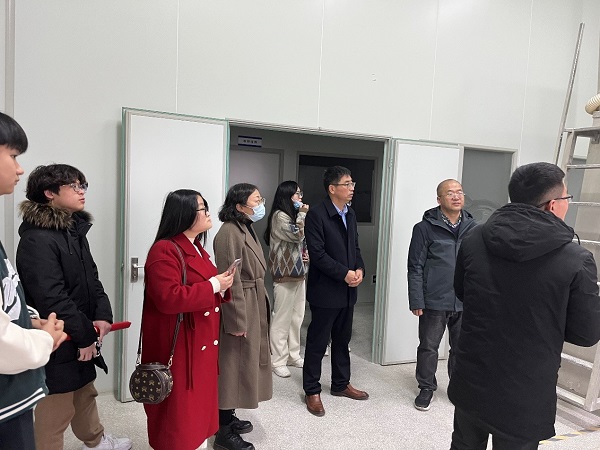 随后,在安徽恒源药业有限公司总经理助理王志强的陪同下,李磊一行深入生产一线,实地参观生产车间,了解产品生产的工艺流程,体会企业严谨的生产管理和员工积极向上的精神面貌。通过学习参观,同学们对行业发展有了更加深入的认识。李磊要求研究生们要脚踏实地,认真学习,提升专业能力,在今后的工作中实现人生价值。